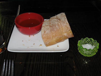 This beer poured a very vibrant deep orange almost pumpkin color. I'd never seen a beer this color before, not even a pumpkin ale. The beer itself was nicely malty with enough body to overcome the slightly bitter finish. I had a feeling this was going to compliment a burger perfectly. The complimentary bread was super tough and almost inedible but the olive oil was fantastic.
